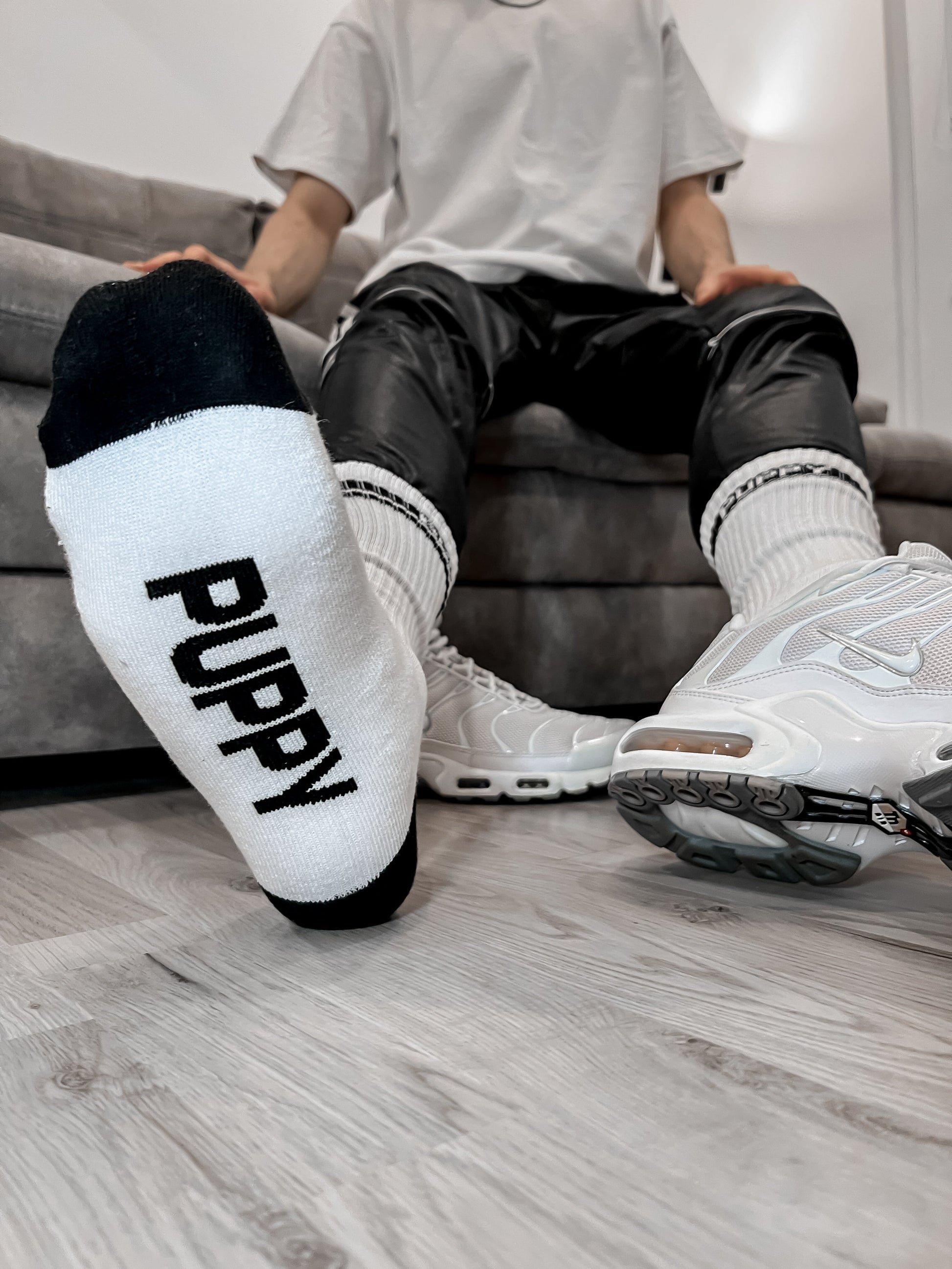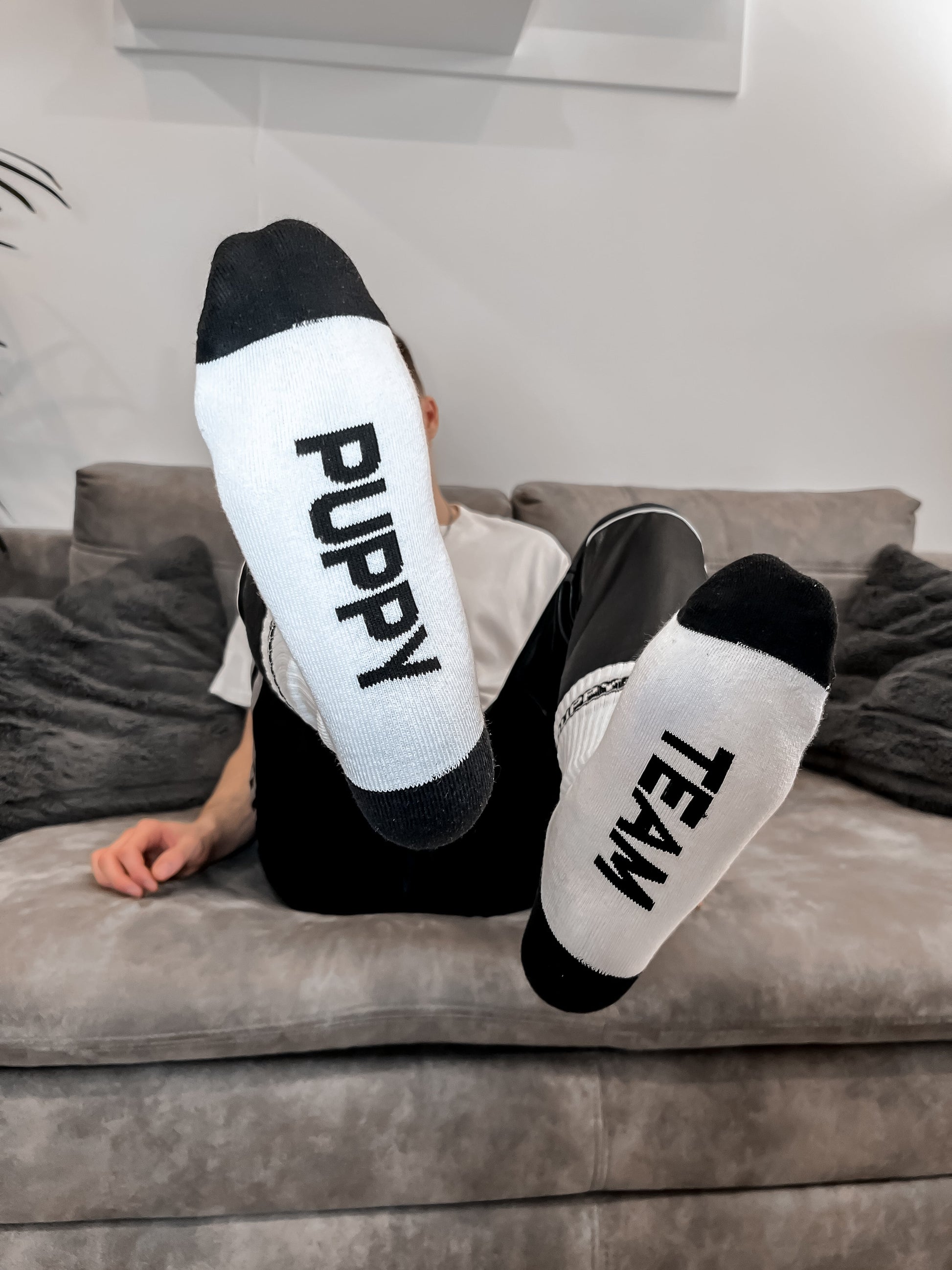 TEAM PUPPY Socken sind ideal für alle guten und schlechten Welpen. Zeigen Sie, was Ihnen gefällt! Mit dem Schriftzug auf der Seite und unten der Socke, wird jeder wissen, dass Sie eine Vorliebe zu Doggy Play.